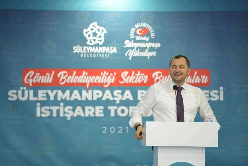 Süleymanpaşa Belediye Başkanı Cüneyt Yüksel’in ev sahipliğinde gerçekleşen istişare toplantılarında esnafa güncel salgın tedbirleri ile bilgilendirme yapılırken, Başkan Yüksel de Süleymanpaşa Belediyesinin gerçekleştirdiği hizmetlerin yanı sıra 2022 yılı itibariyle hayata geçirilmeye başlanacak devasa projeleri tanıttı.