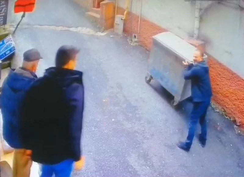 Yaşanan bu olay ise bir iş yerinin güvenlik kamerasına saniye saniye yansıdı. Görüntülerde rüzgarla birlikte dükkan önündeki eşyaların uçuştuğu, ardından çöp konteynerının bayır aşağı hızla gittiği ve esnafın konteynırı durdurduğu görülüyor.