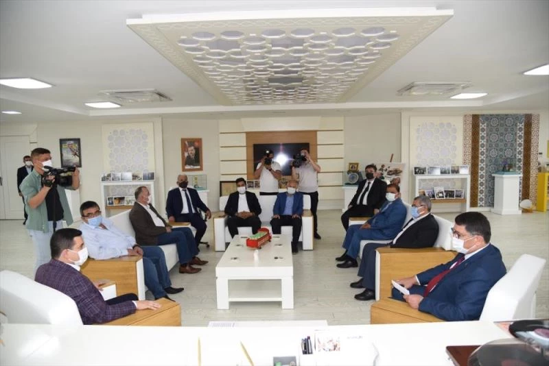 Dere, birlik başkan vekilleri ve yönetim kurulu üyeleriyle ziyaret ettiği Tütüncü ile bir süre görüşerek, salgın sürecinde esnafa verdikleri destekten dolayı teşekkür etti.