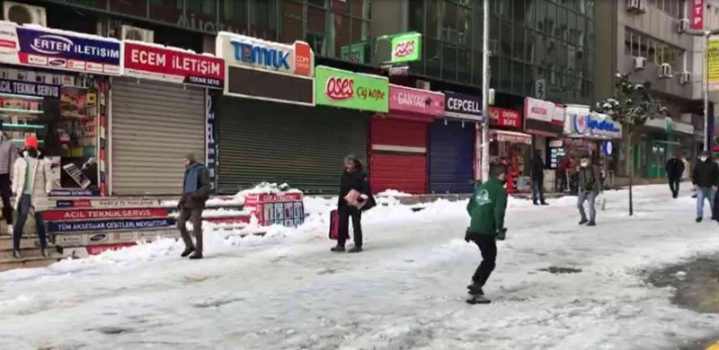 İstanbul’da dün akşam saatlerinde etkisini artıran kar yağışı yolların kapanmasına, vatandaşların mağdur olmasına neden olmuştu. İstanbul genelinde etkili olan kar yağışı esnafı da olumsuz etkiledi. İstanbul’un bazı ilçelerinde kepenklerin kapalı olduğu görüldü. Bazı esnaflar dükkanlarına ulaşamadığı için kepenkleri kapalı tutarken; market fırın gibi dükkanların vatandaşa hizmet vermeye devam ettiği görüldü.