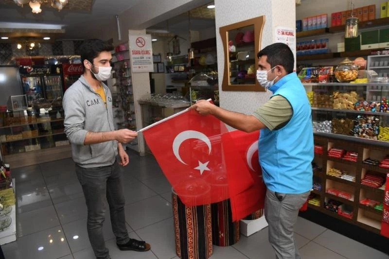Onikişubat Belediyesi zabıta ekipleri, cadde ve mahallelerde başkan Hanefi Mahçiçek’in selamını ileterek esnafa Türk Bayrağı hediye etti. İlçede her yer kırmızı beyaza bürünürken, vatandaşlar ise verilen hizmetten dolayı memnun olduklarını söyledi.