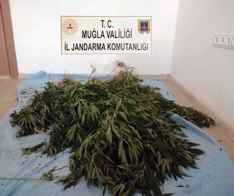 Muğla İl Jandarma Komutanlığı İstihbarat Şube Müdürlüğü ekipleri Menteşe’nin kırsal Muratlar Mahallesinde tarlaya ekili ve ağaçlarda kurumaya bırakılmış esrar maddesi ele ecirdi.