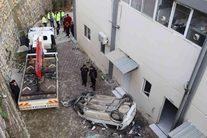Aydın Kuşadası ilçesinde sürücüsünün direksiyon hakimiyetini kaybettiği otomobil, yaklaşık on beş metre yükseklikten yere çakılırken, kadın araç sürücüsü kazayı yara almadan atlattı.