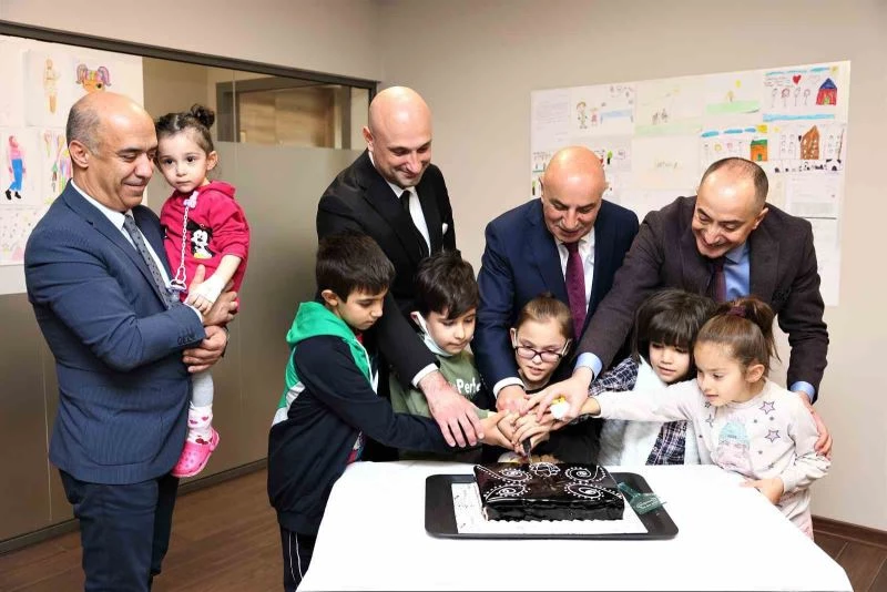 Başkan Altınok ve beraberindeki heyet daha sonra çocuklarla birlikte pasta kesti.
