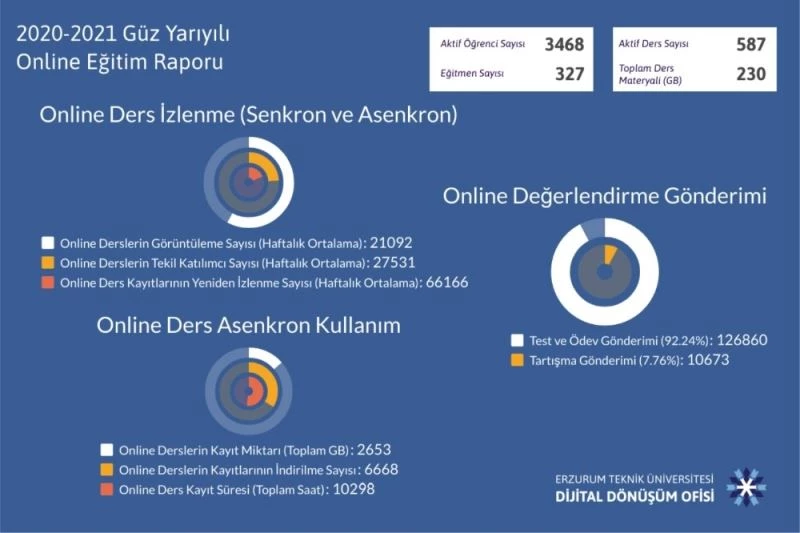 Erzurum Teknik Üniversitesi senatosunun, online eğitimde aktif öğrenmeyi önceleyecek şekilde dönem içi değerlendirme sayısının minimum 4 olacak şekilde karar alması, öğrenci etkileşimini önemli derecede artırdı. Ayrıca derslere katılımın tüm haftalarda sabit bir oranda olduğu da görülüyor.