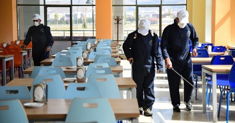 Covid-19 pandemisi nedeniyle bir buçuk yıldır ara verilen yüz yüze eğitime 27 Eylül itibariyle başlayacak olan ETÜ, öğrencilerin ve personelin sıklıkla kullandığı alanlarda salgın tedbirlerini arttırdı. Bu kapsamda Erzurum Yakutiye Belediyesi dezenfektan ekibinin desteğiyle derslikler, laboratuvarlar, kütüphaneler, kantinler, yemekhaneler ve dinlenme salonları gibi toplu kullanım alanları dezenfekte edilerek insan sağlığına uygun hale getirildi.