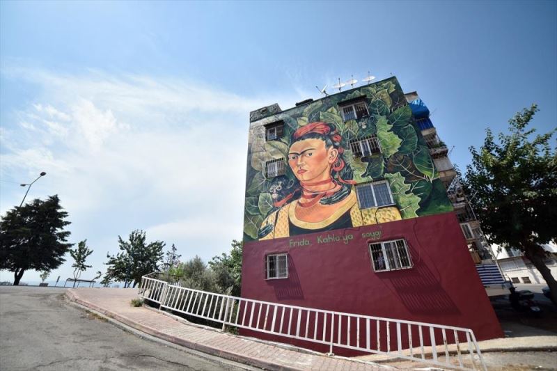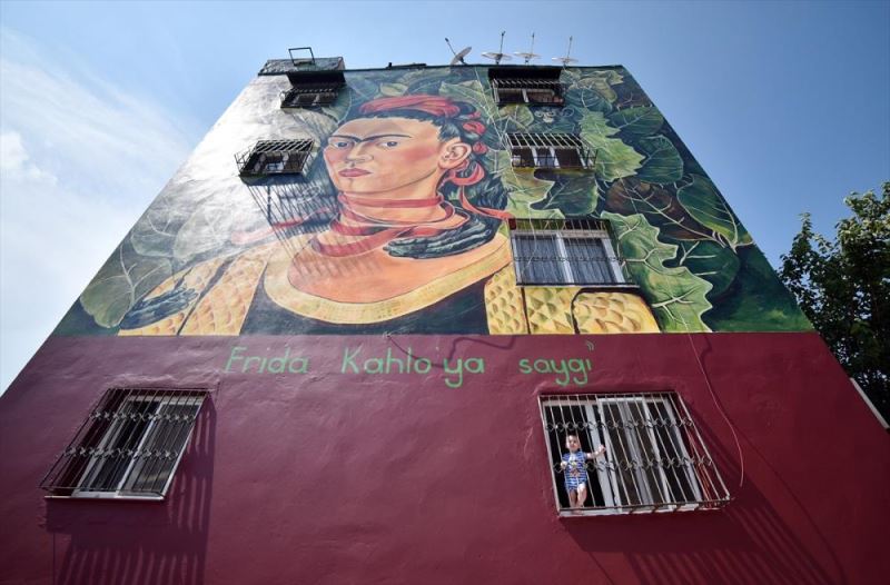 MERSIN (AA) - SERKAN AVCI - Mersin'in Toroslar ilçesindeki boyalari eskimis 35 yillik bir apartmanin dis cephesine dünyaca ünlü ressam Frida Kahlo'nun "Ben ve Maymun" adli eserinin resmedilmesi, bina sakinlerinin ev adresi tarifini de kolaylastirdi.