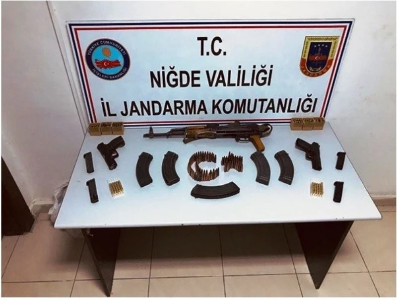 Niğde’de bir kişinin evinde yapılan aramada kalaşnikof, 2 adet tabanca ve silahlara ait mermiler ele geçirildi.