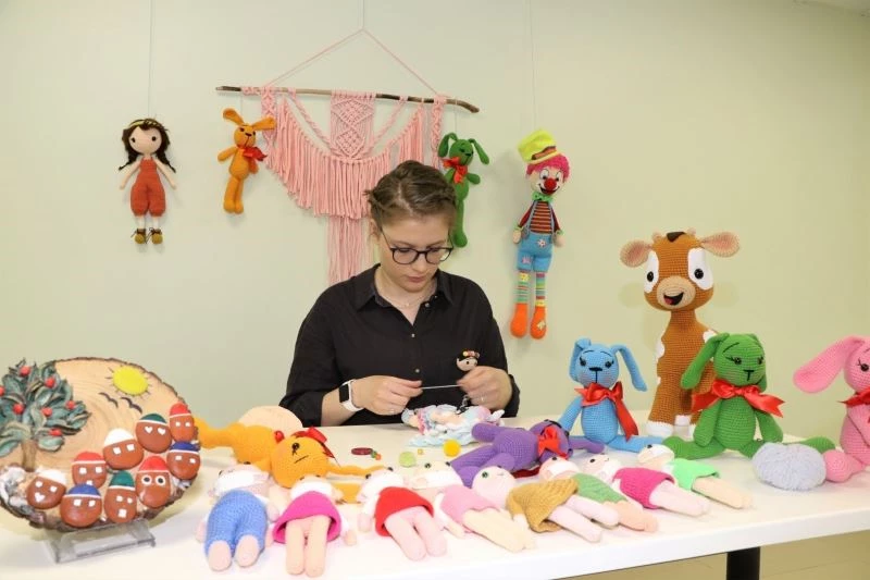 Korona virüs pandemisi nedeniyle kadınlara yönelik faaliyetlerini çevrim içi olarak yürüten Kadın ve Aile Hizmetleri Şube Müdürlüğü, vakitlerinin çoğunu evde geçirmek durumunda kalan ev hanımlarının can sıkıntılarını gidermek ve beceri sahibi olmalarını sağlamak amacıyla son olarak çevrim içi el sanatları kurslarını başlattı. Amigurumi (örgü oyuncak sanatı), Makrome (düğüm tekniği) , el yapımı çanta, örgü kıyafet gibi alanlarda verilen kurslara kadınlar büyük ilgi gösteriyor. Kolay bulunabilir malzemelerle ve en az maliyetle yapılabilen ürünlerin seçildiği kurslar, 8-10 kişilik gruplar şeklinde yapılıyor.