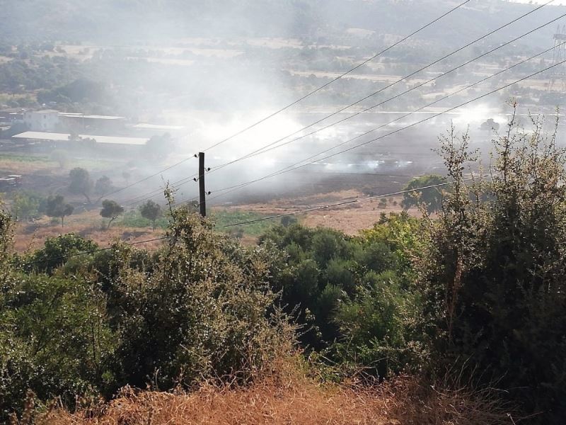 Milas’ta tarlada başlayan yangın, ikametgahlara metreler kala söndürüldü.