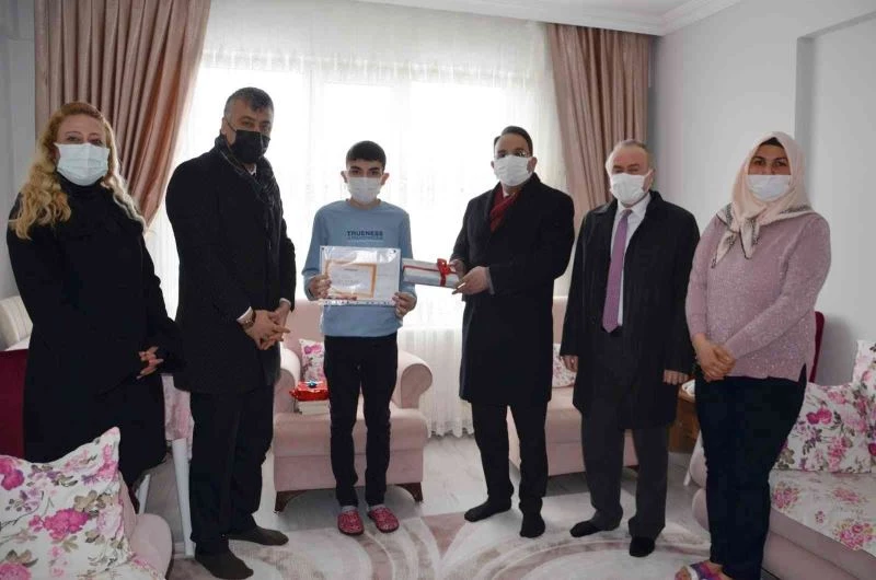 Kaymakam Ertürkmen, evde eğitim hizmeti alan Ertuğrul Gazi Anadolu Lisesi 9. sınıf öğrencisi Mustafa Emir Sabay ile Galip Öztürk Ortaokulu 7. sınıf öğrencisi Efe Kaplan’ı evlerinde ziyaret ederek karnelerini verdi. Ertürkmen, “Öğrencilerimizin yanlarında olduğumuzu hissetmeleri için evlerine gidiyoruz. İkinci dönem için çocuklarımızın tekrar ihtiyaçları varsa, eğitim noktasında maddi manevi yapılması gerekenler varsa yardımcı olmak üzere bugün öğrencilerimizin yanlarındayız” dedi.