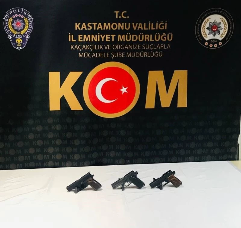 Öte yandan KOM ve istihbarat şube müdürlüklerince, silah ve mühimmat kaçakçılığı ile mücadele faaliyetleri kapsamında yapılan operasyonda Kastamonu Şehirlerarası Otobüs Terminalinde 3 adet ruhsatsız tabanca ele geçirdi. Operasyon sonucu yakalanan 1 şahıs hakkında ’silah ve mühimmat kaçakçılığı, imal ve ticareti’ suçundan işlem yapıldı.
