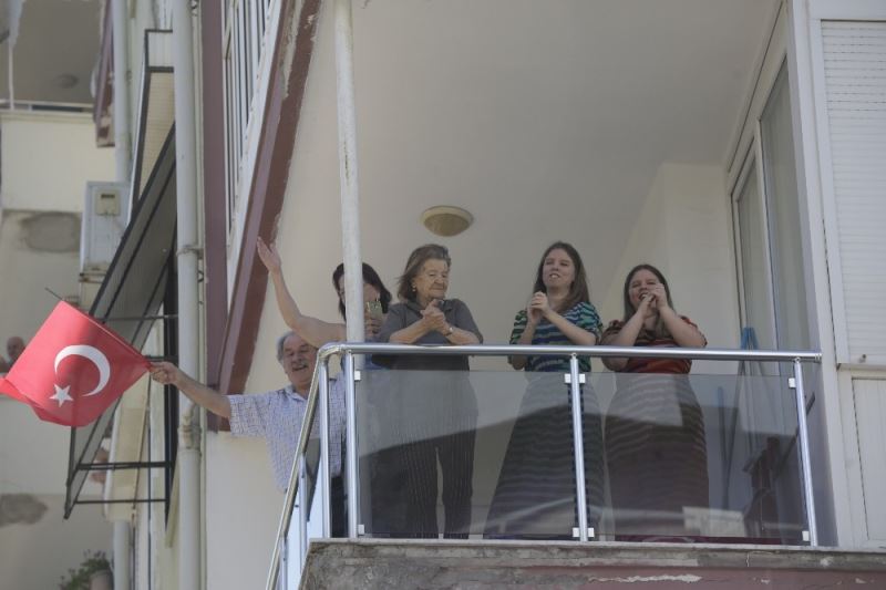 Mobil konserler kapsamında Kepez Mahmut Celalettin Ökten Anadolu İmam Hatip Lisesi yurdunda 1 Nisan’dan itibaren izolasyon altına alınarak kontrollü bir şekilde işe gidip gelmeleri sağlanan infaz koruma memurları da unutulmadı. İzolasyon nedeniyle bayramı ailelerinden ayrı geçirmek zorunda kalan infaz koruma memurları yurt bahçesinde sosyal mesafe kuralına bağlı kalarak ellerindeki Türk bayraklarıyla bandoya eşlik etti.