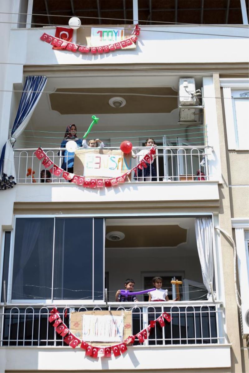 "Çocuklar sadece balkonlarini süslemekle kalmasin" düsüncesiyle sürprizi hayata geçirdiklerini ifade eden Kaplan, "Hem ögrencilerimiz hem de mahalledeki diger çocuklar palyaçoyu görünce çok heyecanlandi. Çocuklar kadar aileleri de mutlu oldu. Ögretmen arkadaslarimizla iyi ki böyle bir etkinlik düzenledik, bu kadar güzel olacagini tahmin etmiyordum." diye konustu.