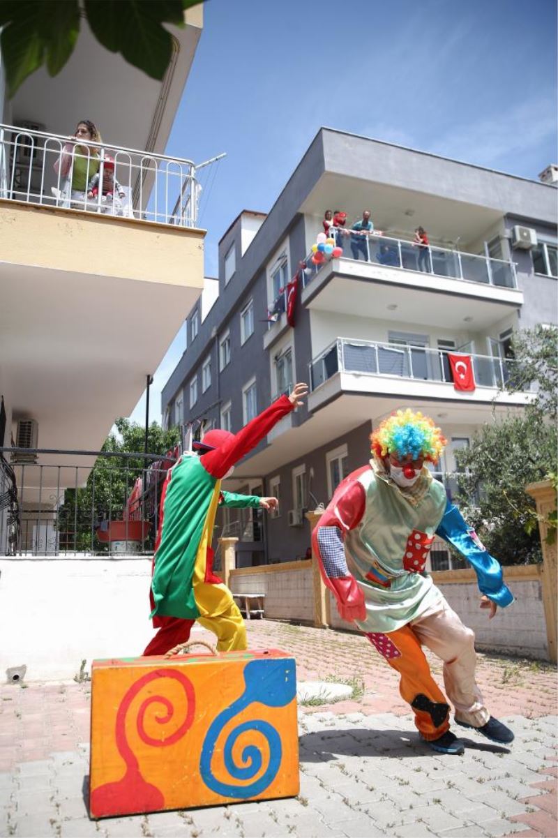 Sokakta palyaçolarin müzik esliginde gösteri yaptigini fark eden çocuklar, hemen balkonlara kostu. Keyifli dakikalar geçiren çocuklar ve ailelerinin mutlulugu gözlerinden okundu.