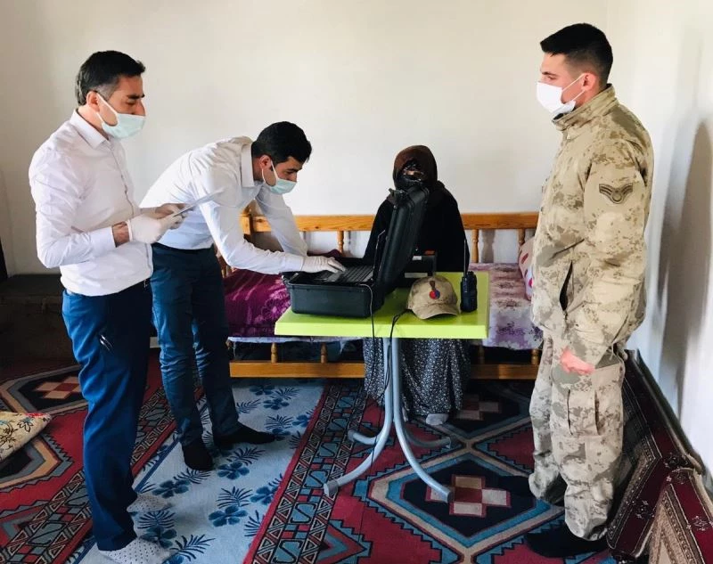 Adıyaman’ın Sincik ilçesine bağlı İnlice Beldesinde ikamet eden Hatun Çok’a Sincik Nüfus Müdürlüğü personeli evinde parmak izini alarak cipli kimlik kartı verdi.