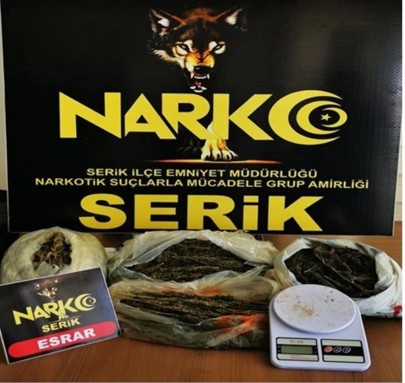 Serik Cumhuriyet Başsavcılığı koordinesinde, Narkotik Suçlarla Mücadele Şube Müdürlüğü ve Serik Narkotik Grup Amirliği görevlileri tarafından yapılan çalışmada