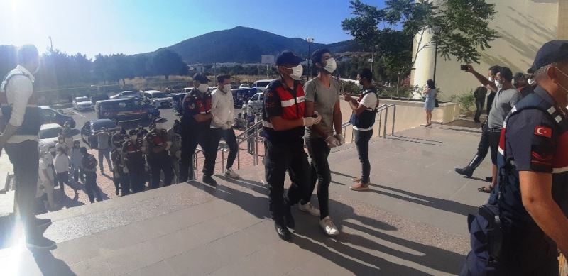 Jandarma ekipleri şüpheliler gelmeden önce Bodrum Adliyesi’nde yoğun güvenlik önlemleri aldı. Kalabalık bir gurubun şüphelileri beklediği görüldü. 15 şüpheli için geniş güvenlik önlemleri ile adliyeye getirildi.