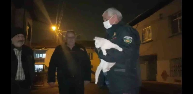 Evden kaçan Van kedisi ağaçta mahsur kaldı, itfaiye kurtardı