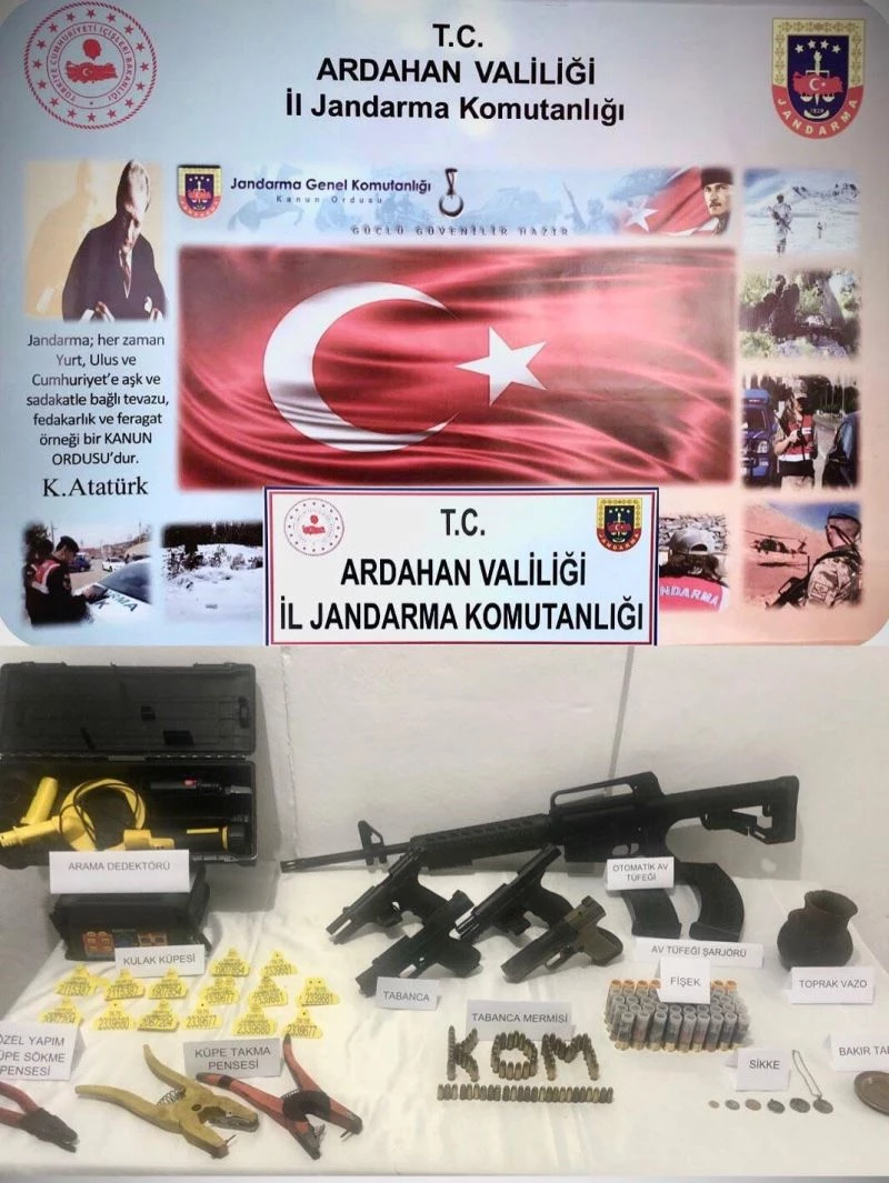 Ardahan İl Jandarma Komutanlığınca Çıldır ilçesine bağlı Sabaholdu köyünde bir ikamete yapılan operasyonda çok sayıda tarihi eser ele geçirildi. Olayda silah ve tarihi eser kaçakçısı gözaltına alındı.
