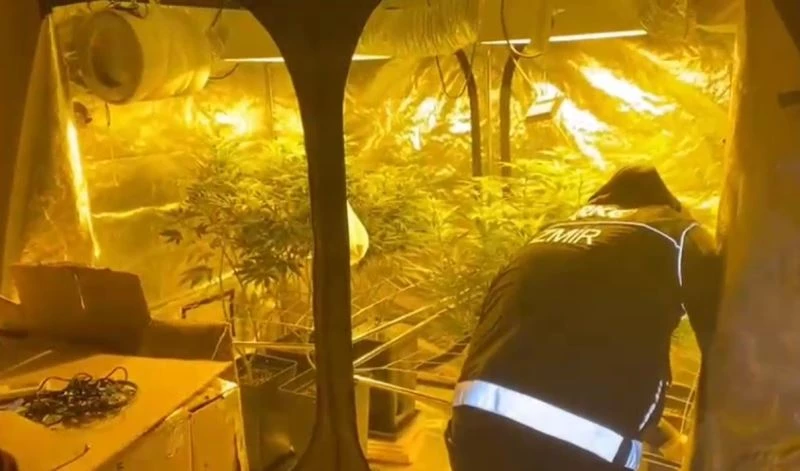 İzmir İl Emniyet Müdürlüğü Narkotik Suçlarla Mücadele Şube Müdürlüğü ekipleri, Buca ilçesinde bulunan bir evde uyuşturucu imalatı yapıldığı bilgisi üzerine çalışma başlattı. Harekete geçen ekiplerin teknik ve fiziki takibin ardından adres belirlenerek operasyon düzenlendi. Adreste yapılan incelemede evin içine çadır kurulduğu, çadırın içine de sera düzeneği kurulduğu ve uyuşturucu imalatı yapıldığı belirlendi. Yapılan aramada sera düzeneği ve kenevir bitkileri ele geçirildi. Operasyon anları kameraya yansıdı.
