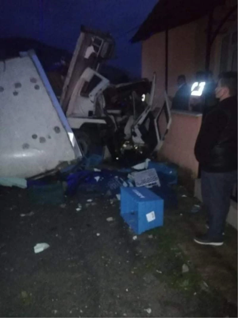 Evin duvarına çarparak durabilen kamyonun sürücüsü öldü