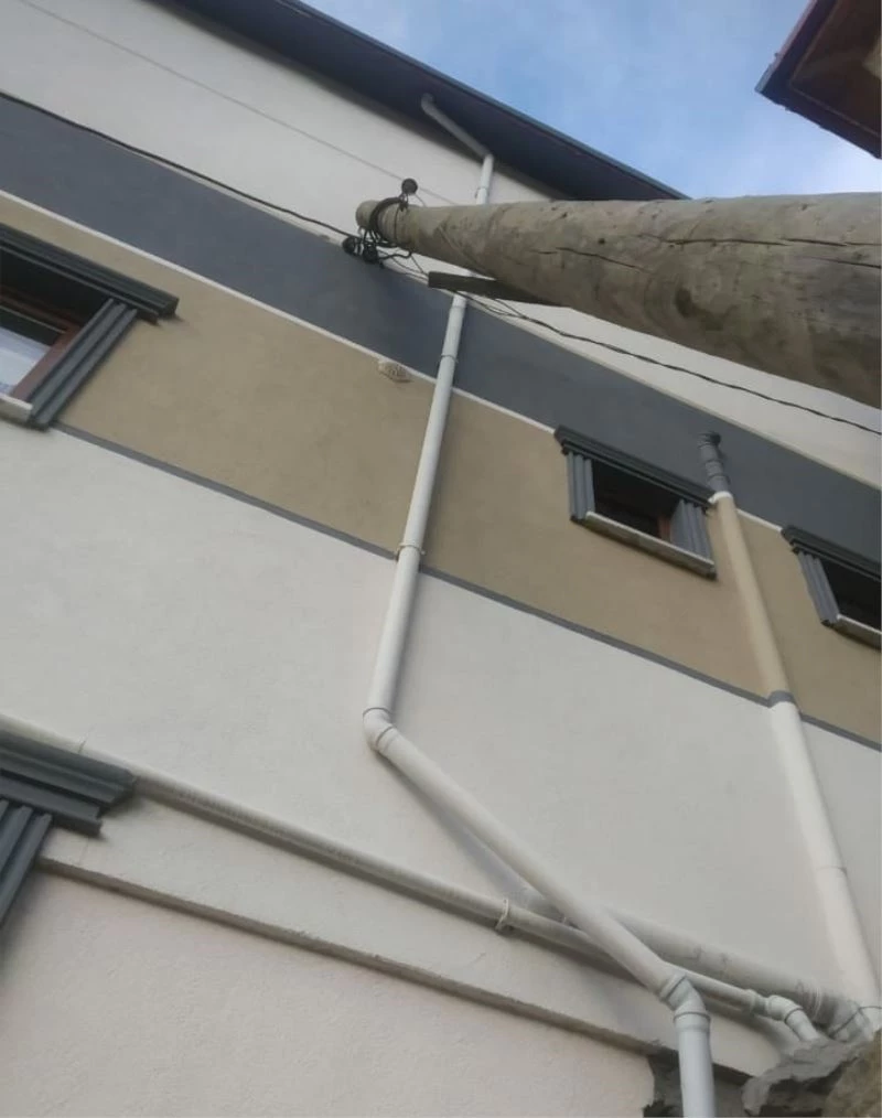 Evin gövdesine yaslanan elektrik direğine müdahale edildi