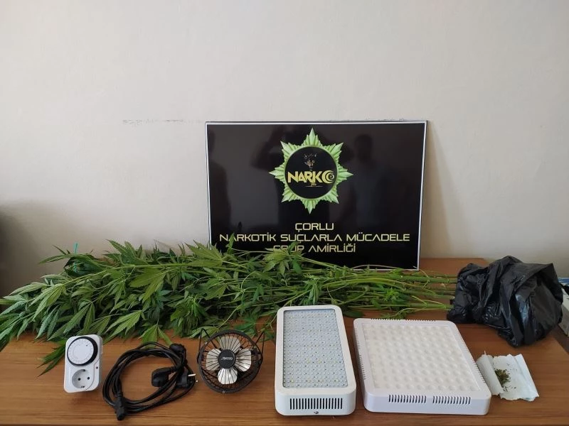 Edinilen bilgilere göre Çorlu İlçe Emniyet Müdürlüğü Narkotik Suçlarla Mücadele Grup Amirliği ekipleri, Zafer Mahallesi’nde bir evde hint keneviri yetiştirildiği ve bulundurulduğu iddiasıyla operasyon düzenledi. Operasyonda 2 ultraviyole ışık, fan, zamanlayıcı kullanılarak oluşturulmuş yetiştirme düzeneği içerisinde saksılara ekili vaziyette hint kenevirleri ve bir miktar esrar ele geçirildi. Olayla ilgili olarak T.Ö., Y.K.S. ve C.Ş.K. gözaltına alındı.