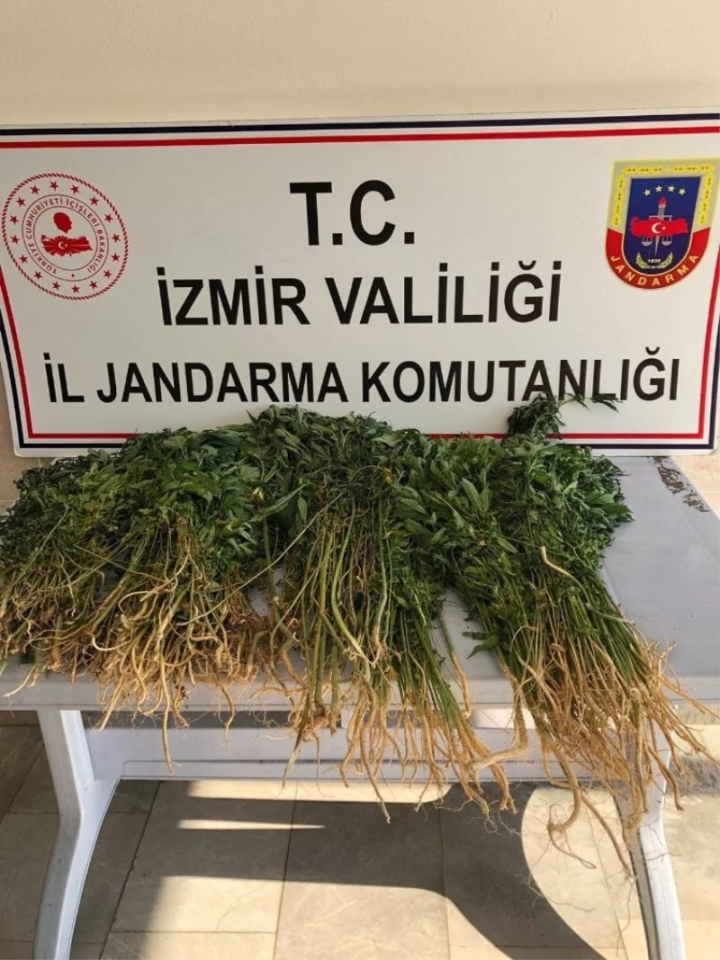 İzmir’in Kemalpaşa ilçesinde jandarmanın düzenlediği operasyonda 136 kök Hint keneviri ele geçirildi, 1 kişi gözaltına alındı.