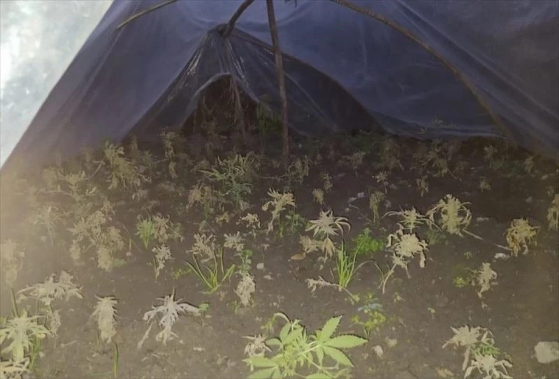 Valilikten yapılan açıklamaya göre, İl Jandarma Komutanlığı ekipleri, İmran Mahallesi'ndeki evin bahçesinde Hint keneviri yetiştirildiğini belirledi.