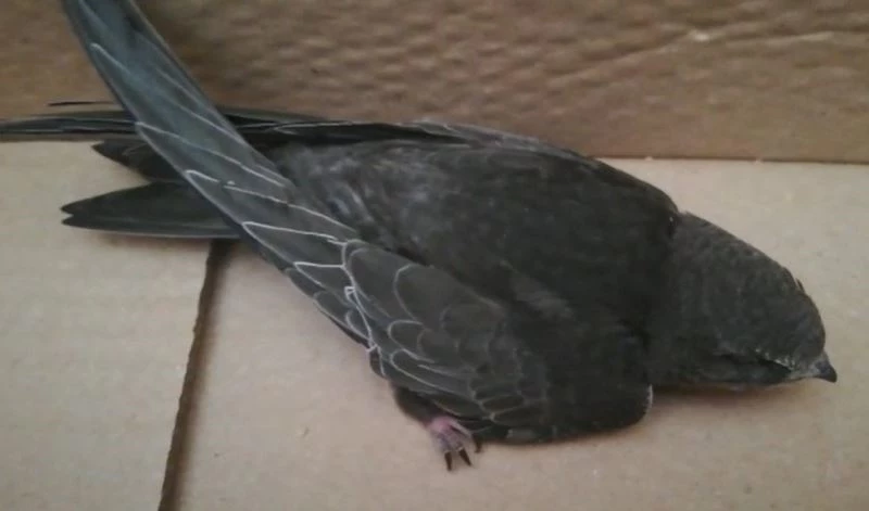 Mersin’in Tarsus ilçesinde bir kişi evinin balkonunda, uçamayan ebabil kuşu buldu.