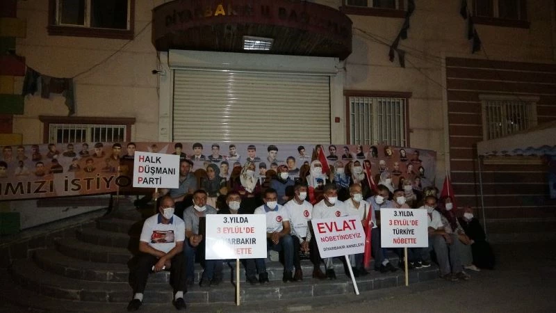 Çocuklarının terör örgütü PKK tarafından kaçırıldığı iddiasıyla 3 Eylül 2019’dan itibaren farklı kentlerden Diyarbakır’a gelerek HDP il binası önünde oturma eylemi başlatan ailelerin umutlu bekleyişi 724’üncü gününe girdi. Evlat nöbetindeki aileler gece nöbetine HDP il binası önünde devam ediyor. Aileler adına açıklama yapan Celil Beğdaş, Ankara’da HDP Genel Merkezi kapısı önünde yaşadıklarını anlatarak siyah çelenk bıraktıklarını kaydetti. Beğdaş, “Bugün 724 gündür aile olarak HDP önündeyiz. Dün tatsız bir gün yaşadık, Ankara’da HDP milletvekilleriyle görüşme yapacaktık, sözde bize destek olacaklardı. HDP milletvekilleri halktan kaçtılar, biz de son dakika siyah çelenk bırakarak onları kınadık. Onları kınarken bize laflar ettiler, bunlar hani halkın vekili ve Kürt’ü temsil ediyorlardı bizden kaçtılar. Yetmedi bize hakaret ettiler. Biz aileler olarak 3 Eylül’de bütün dünyayı buraya çağırıyoruz, bize destek versinler biz buradan kalkmayacağız” dedi.