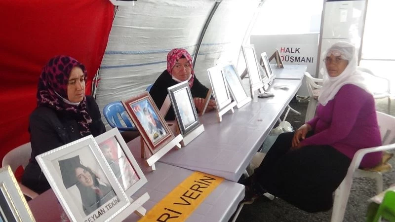 Çocukları terör örgütü PKK tarafından zorla kaçırılarak dağa götürülen ailelerin HDP Diyarbakır il binası önündeki evlat nöbeti 692’inci gününde de ilk günkü kararlılıkla sürerken, aileler Kurban Bayramı’nı buruk ve hüzünlü geçiriyor. Evlat nöbetindeki anne Hatice Ay, 12 bayramdır evladından ayrı olduğunu belirtti.