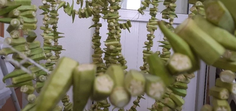 Çorum’un Osmancık ilçesinde bamya hasadıyla birlikte evlerde kış hazırlığı başladı.