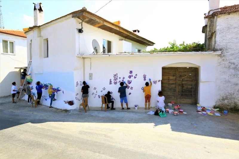 Muğla Büyükşehir Belediyesi tarafından başlatılan ‘Mor Sokak’ projesi kapsamında gönüllü 30 üniversite öğrencisi ve Yeniköy mahalle sakinlerinin katılımıyla devam eden etkinlikte evlerin duvarlarına lavanta figürleri ve lavanta tarlaları içerisinde gezen insan figürleri resmediliyor.