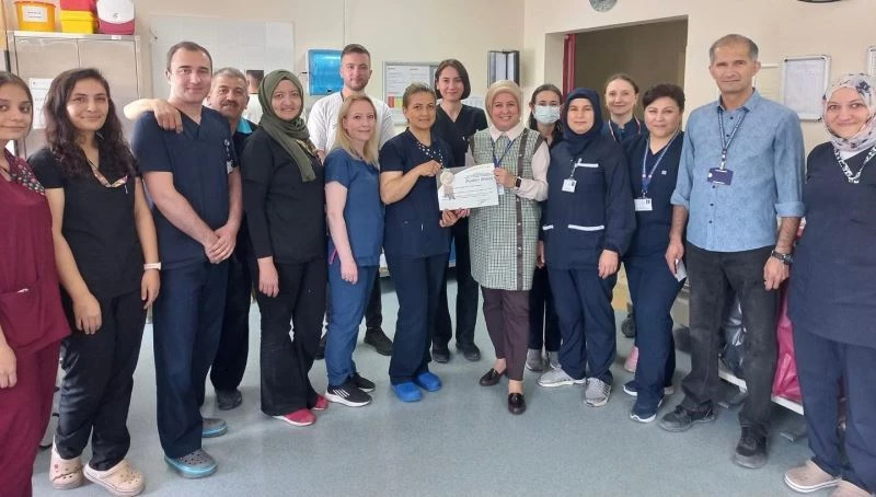 Kütahya Evliya Çelebi Eğitim ve Araştırma Hastanesi, enfeksiyonların bulaşmasını önlemek için hem sosyal ortamlarda, hem de hastane ortamında en etkili, basit ve ekonomik uygulama olan el hijyenin doğru uygulamasının önemini vurgulamak için klinikler arası değerlendirmelerine aralıksız devam ediyor. 2023 yılının ikinci değerlendirmesinde en yüksek skoru elde eden Hastane Koroner Yoğun Bakım Ünitesi çalışanlarına, Sağlık Bakım Hizmetleri Müdürü Sevil Akgün tarafından Teşekkür Belgesi takdim edildi.