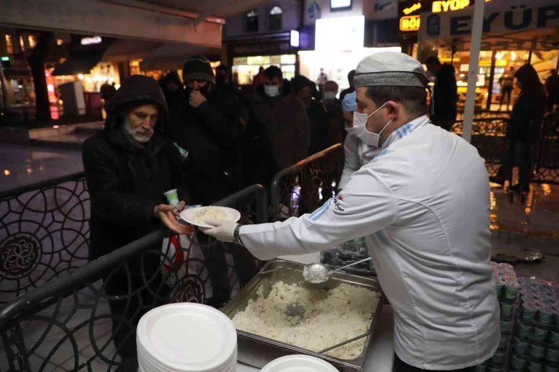 Eyüpsultan Belediyesi, rahmet ve bereket gecesi olarak ifade edilen Regaip Kandili nedeniyle ilçe genelinde farklı noktalarda vatandaşlara lokma ve etli pilav ikramlarında bulundu.