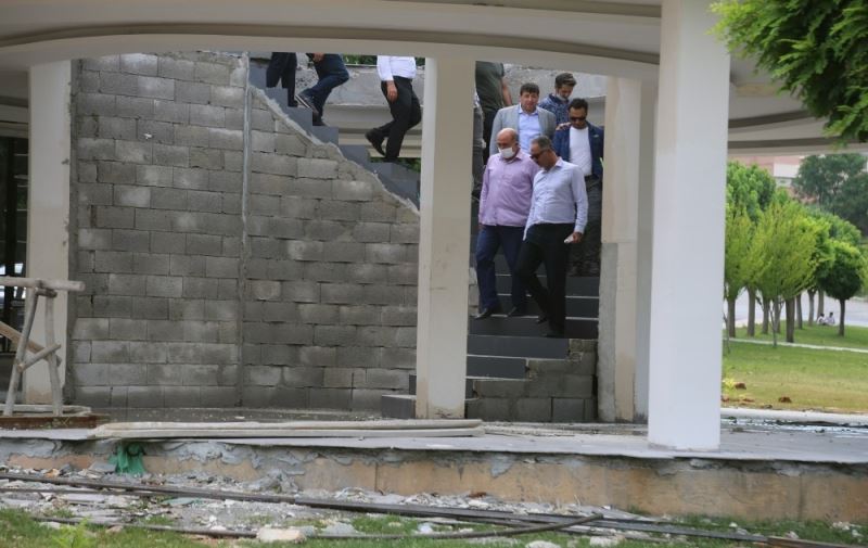 Eyyübiye Belediye Başkanı Mehmet Kuş, ilçeye kazandırılacak olan ve çalışmaların tamamlanma aşamasına gelen ‘Aile Otağı’nda incelemelerde bulundu.