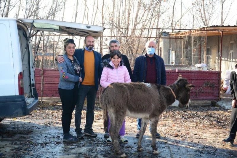 Kahramanmaraş’ın Elbistan ilçesinde sahibi tarafından işkence gören eşek, geçici olarak bakımını üstlenen aileden sanatçı Haluk Levent’in başkanlığını yaptığı Ahbap Derneği görevlilerince alınarak İzmir’deki kurtarılmış hayvan çiftliğine götürüldü.