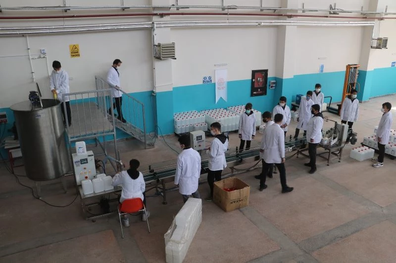 Kimya teknolojisi alanı öğretmeni Sefa Aksakal, kimya tesisinde 30 çeşit ürün üretebildiklerini belirterek, “Yaklaşık bir yıldır dezenfektan ve deterjan gurubu çalışıyoruz. Özellikle dezenfektan grubu ilimizin ve milli eğitim müdürlüğünün isteklerini karşılamaya çalıştık. Birçok kamu kurumunun ve özel şirketlerin dezenfektan ve deterjan ihtiyaçlarını karşılıyoruz. Biz burada yaklaşık 30 çeşit ürün üretebiliyoruz. Bunu da tamamen ilimizdeki isteğe göre çeşitliliğimizi arttırabiliriz. Bizim buradaki asıl amacımız teoride öğrencilerimize öğrettiğimiz bu ürünlerin nasıl üretildiği, içerikleri, birleşimi, kimyasal maddelerin birbirlerine verdikleri tepkileri. Onların teoride gösterdiklerimizin burada sahada ve pratikte nasıl uygulayacaklarını görüyorlar. Buda ileride bu öğrencilerimize iyi bir iş imkanı sağlıyor” şeklinde konuştu.