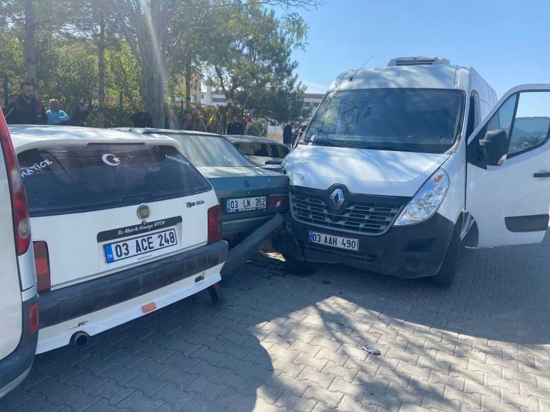 Afyonkarahisar’da kontrolden çıkan kamyonet fabrika önünde park halindeki 6 araca birden çarptı. Ölen ya da yaralananın olmadığı kazada ciddi miktarda maddi hasar meydana geldi.