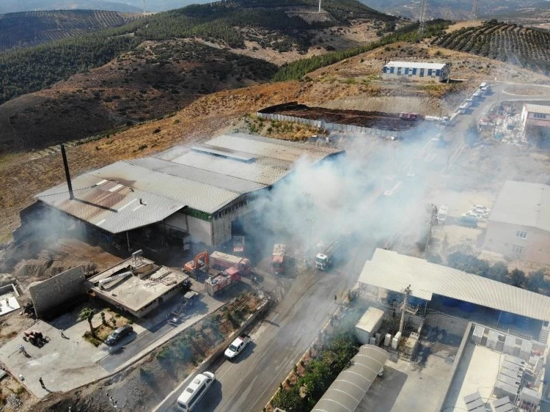 Hatay’da Antakya Organize Sanayi Bölgesinde bulunan bir fabrikada çıkan yangın 3 saatin sonunda güçlükle kontrol altına alındı. Fabrika yangını drone ile de görüntülendi.