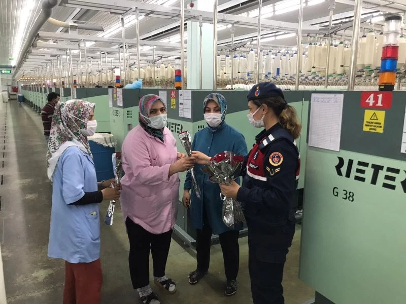 Kahramanmaraş’ta Jandarma ekipleri,1 Mayıs Emek ve Dayanışma Günü kapsamında işçilere çiçek dağıttı.