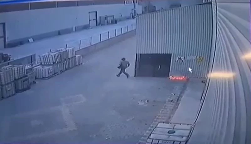 Yangın sonrası iş yerinde ve çevresinde inceleme yapan polis ve itfaiye ekipleri güvenlik kameralarının görüntülerini incelemeye aldı. Görüntülerde, kafasında kask ile bir kişinin tellerden atlayarak fabrikaya geldiği ve içeride alkol tankının bulunduğu bölgeye yanıcı madde dökerek ateşe verip kaçtığı görülüyor. Kamera görüntülerinde yangın devam ederken, fabrikada patlama meydana geliyor ve etraf savaş alanına dönüyor.