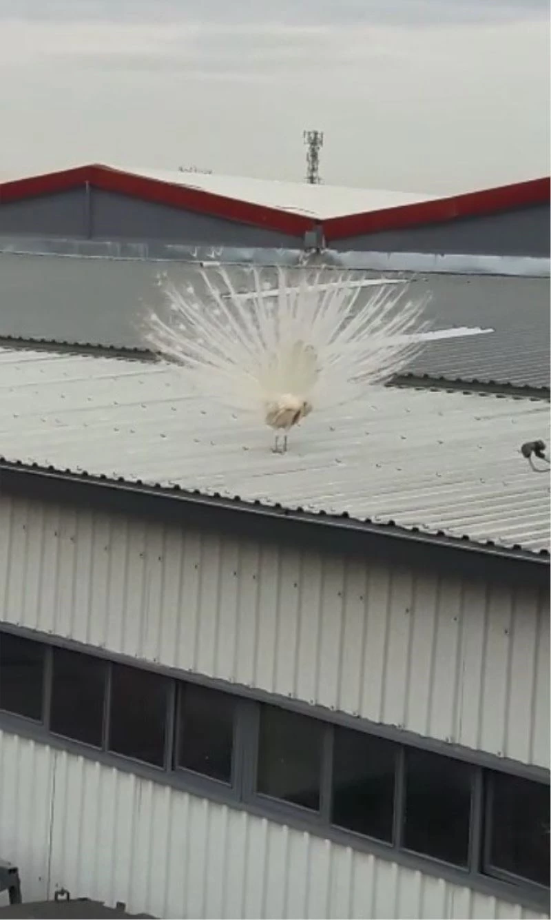 Fabrikanın çatısına tavus kuşu kondu, görenler hayretler içinde kaldı