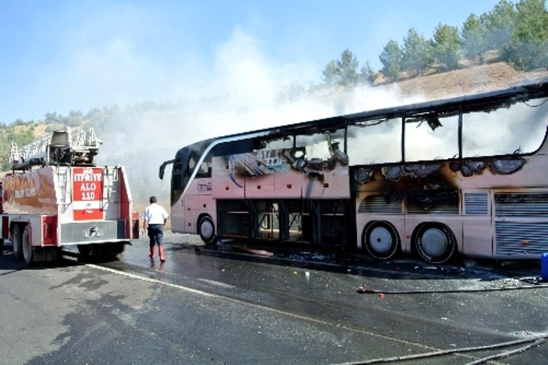Osmaniye?de otobanda seyir halindeki yolcu otobüsü yanarak kullanılmaz hale gelirken, yolcular son anda kurtarıldı.Mersin?den Malatya?ya giden Mehmet Çakmak (52) yönetimindeki 34 US 8391 plakalı yolcu otobüsü, Tarsus-Adana-Gaziantep (T.A.G.) otoyolunun Osmaniye turnikelerini geçince 14. kilometresinde, motor bölümünden yanmaya başladı. Yangını fark eden sürücü, otobüsü emniyet şeridine çekti. Önce 23 yolcu ve 3 personeli tahliye eden sürücü, kısa sürede aracın arka kısmını saran alevlere yangın tüpüyle müdahale etmeye çalıştı. Otobüsün içine sıçrayan yangın büyüdü.Osmaniye ve Düziçi belediyesi itfaiye ekiplerinin müdahale ettiği yangında araç kullanılamaz hale gelirken, araçtan sıçrayan alevler yol kenarındaki çalılıkların tutuşmasına neden oldu. Ormanlık alana sıçrayan yangın vatandaşlar ve itfaiye ekiplerinin müdahalesi ile söndürüldü.Yolcular, başka bir otobüsle Malatya?ya gönderildi.