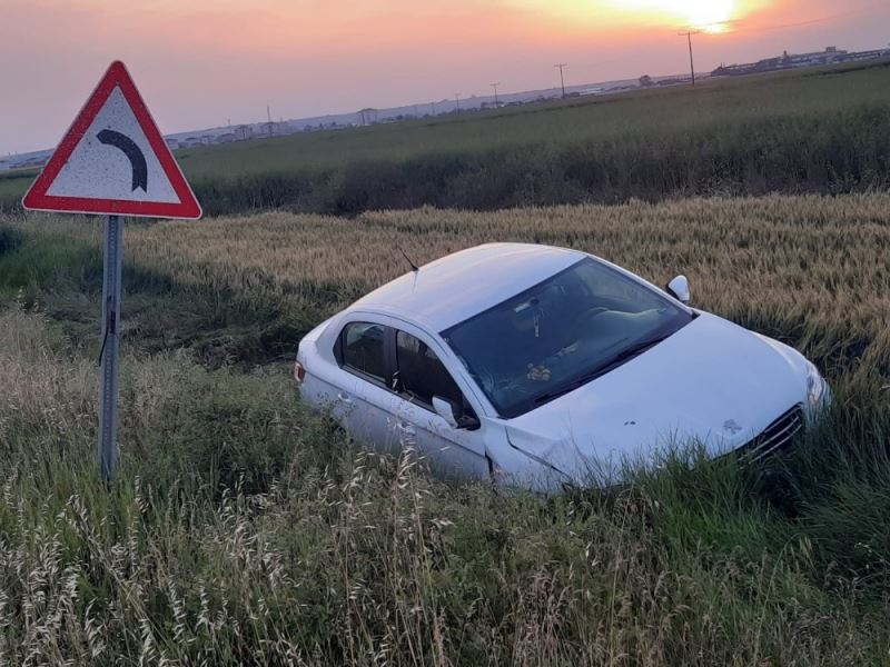 Erdem T. yönetimindeki otomobil ise yoldan çıkarak tarlaya uçtu. Şans eseri sürücü Erdem T. ile yanındaki yolcu kazayı yara almadan atlattı.