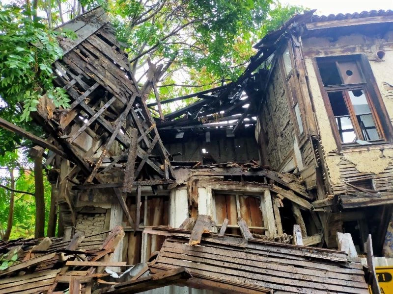 Edirne’de şiddetli sağanak nedeniyle kullanılmayan 1 asırlık tarihi bir bina yıkıldı.
