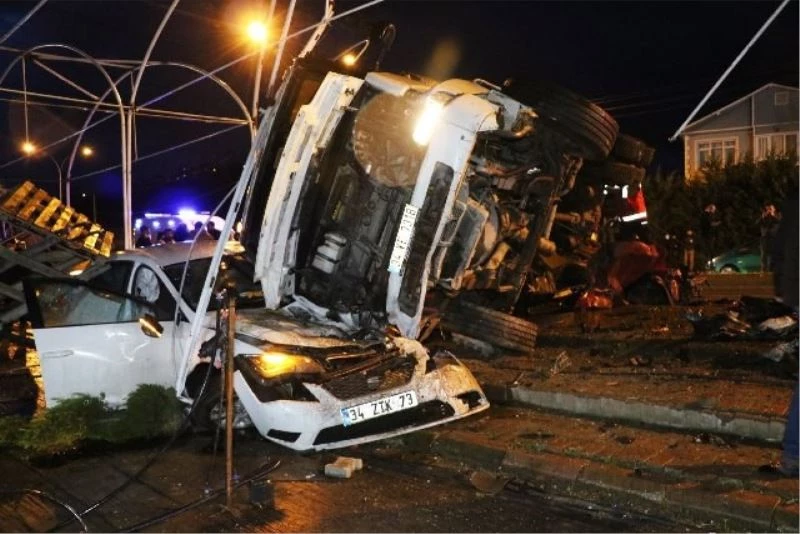 Kaza, Serdivan ilçesi Beşköprü Mahallesi 32 Evler Caddesi polis kontrol noktası mevki’inde meydana geldi. Edinilen bilgilere göre, Mehmet Cemal S. idaresindeki 34 VE 7318 plakalı özel bir firmaya ait asfalt yüklü kamyon, rampadan indiği esnada kontrolden çıktı. Kontrolden çıkan kamyon, karşı şeritten gelen Hakan Altun idaresindeki 06 EMK 60 plakalı Volkswagen marka lüks otomobil ile Eray Demircan idaresindeki 34 ZTK 73 plakalı Seat marka otomobilin üzerine devrildi. Vatandaşların ihbarı üzerine bölgeye çok sayıda sağlık, polis ve itfaiye ekibi sevk edildi.