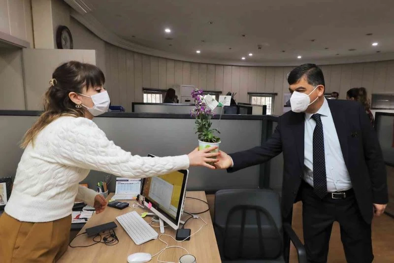 Şehitkamil Belediye Başkanı Rıdvan Fadıloğlu, 8 Mart Dünya Kadınlar Günü dolayısıyla kadın personelleri çalıştıkları birimde ziyaret ederek çiçek armağan etti.